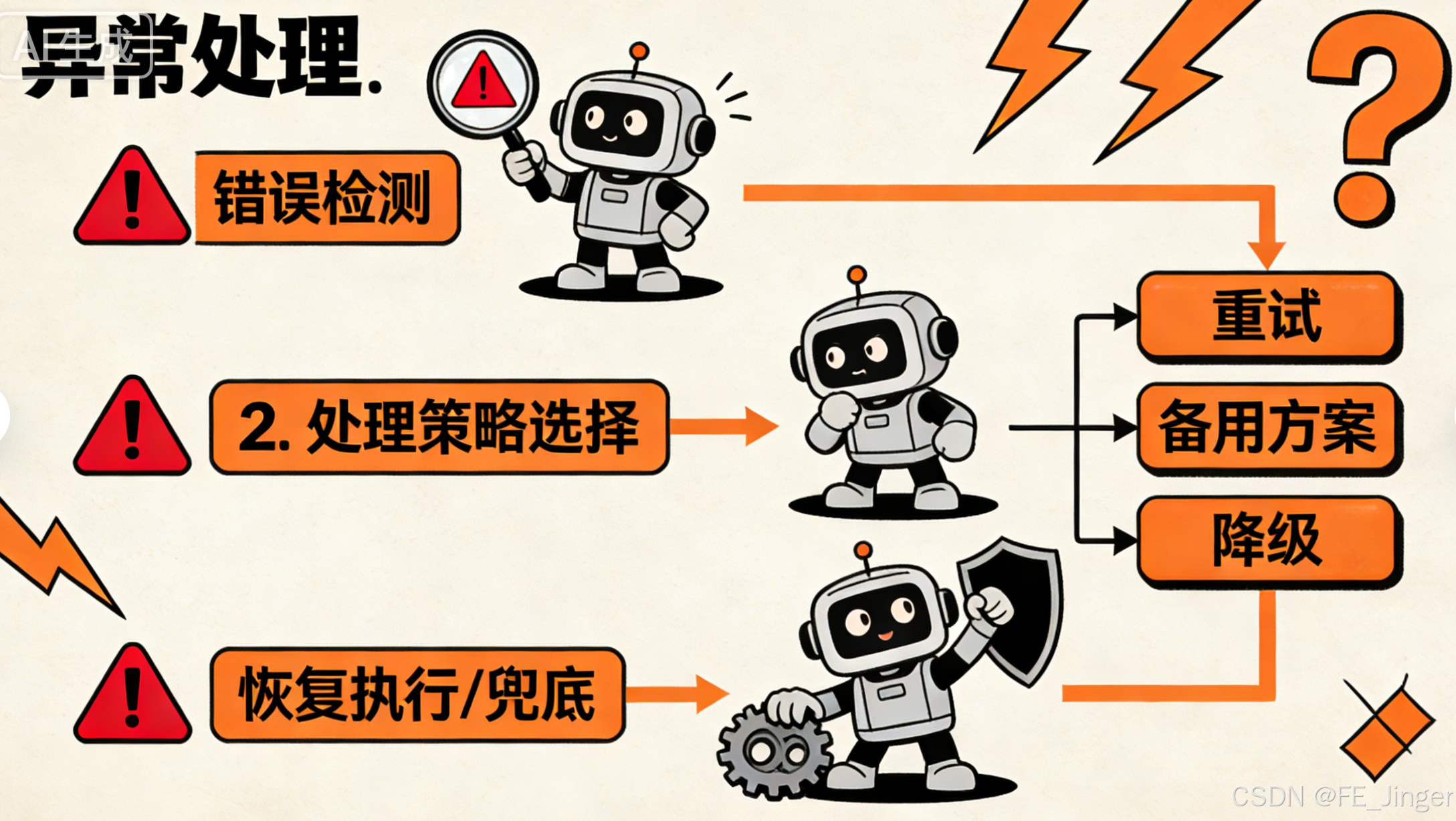 - 图2:异常处理三步流程图(错误检测→处理策略选择→恢复执行/兜底)。