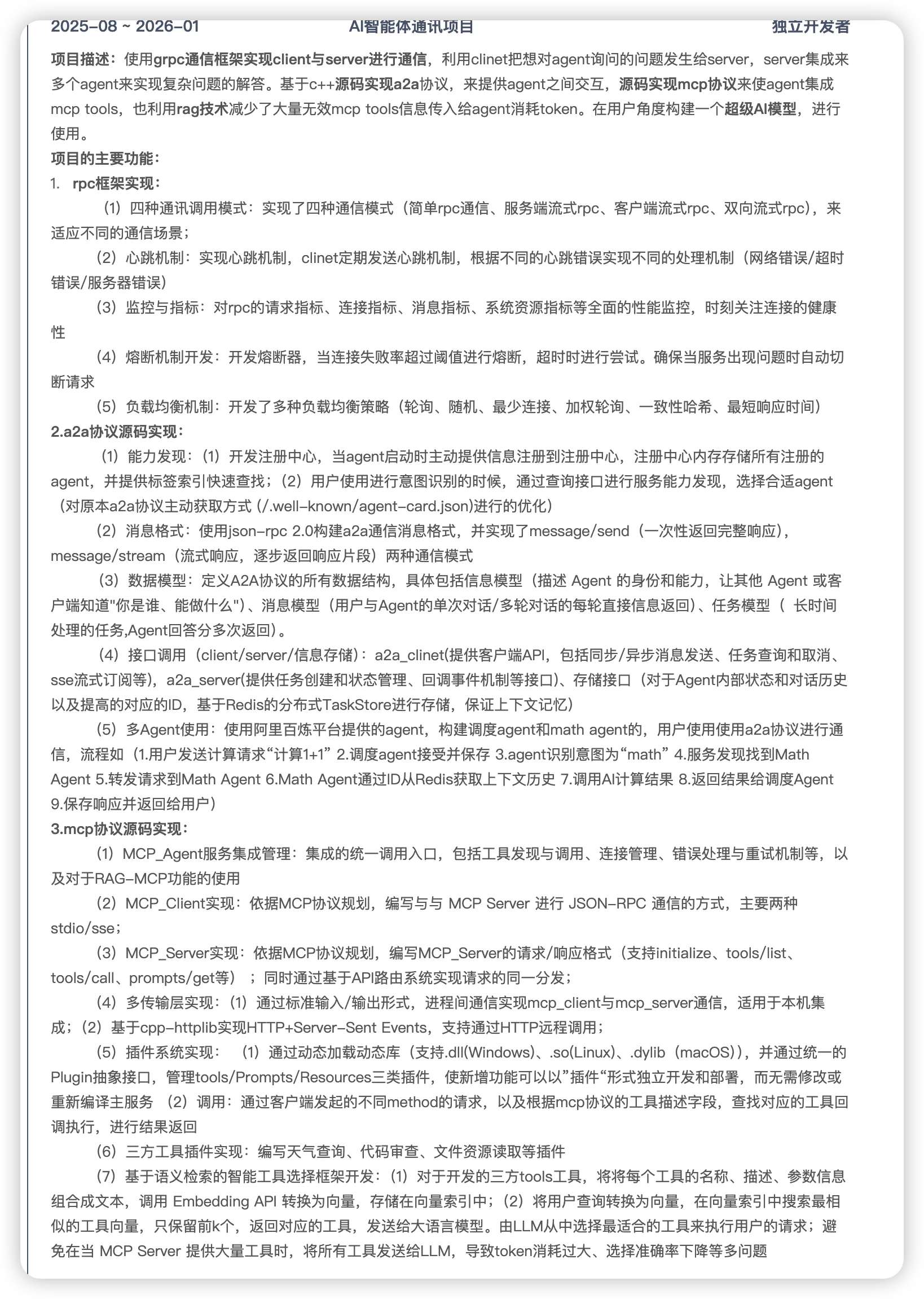 AI智能体通讯项目通过rpc框架实现clinet与server通信,利用client把想对agent询问的问题发送给server,server集成了多个agent,来实现复杂问题的解答。