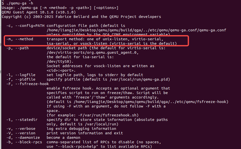 $ ./qemu-ga -m unix-listen -p /tmp/qga.sock --statedir=/tmp/qga-state