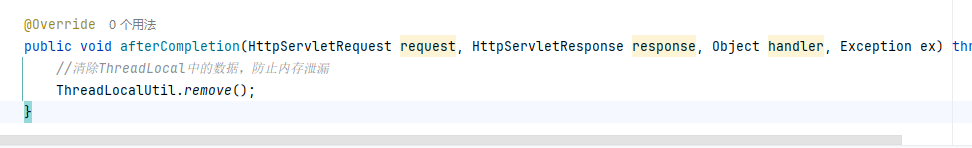 那么我们不要忘了移除线程得内容,因为它是全局变量,我们每次请求如果不把内容情况,就容易爆栈,那么什么时候,就是我们对每次请求响应结束后
