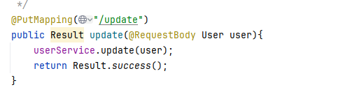 因为我们需要接收JSON格式的数据,我们就需要用@RequestBody这样的注释把JSON格式数据封装到属性里面,剩下的实现都是基本语法,对了还要再Service层里面确定