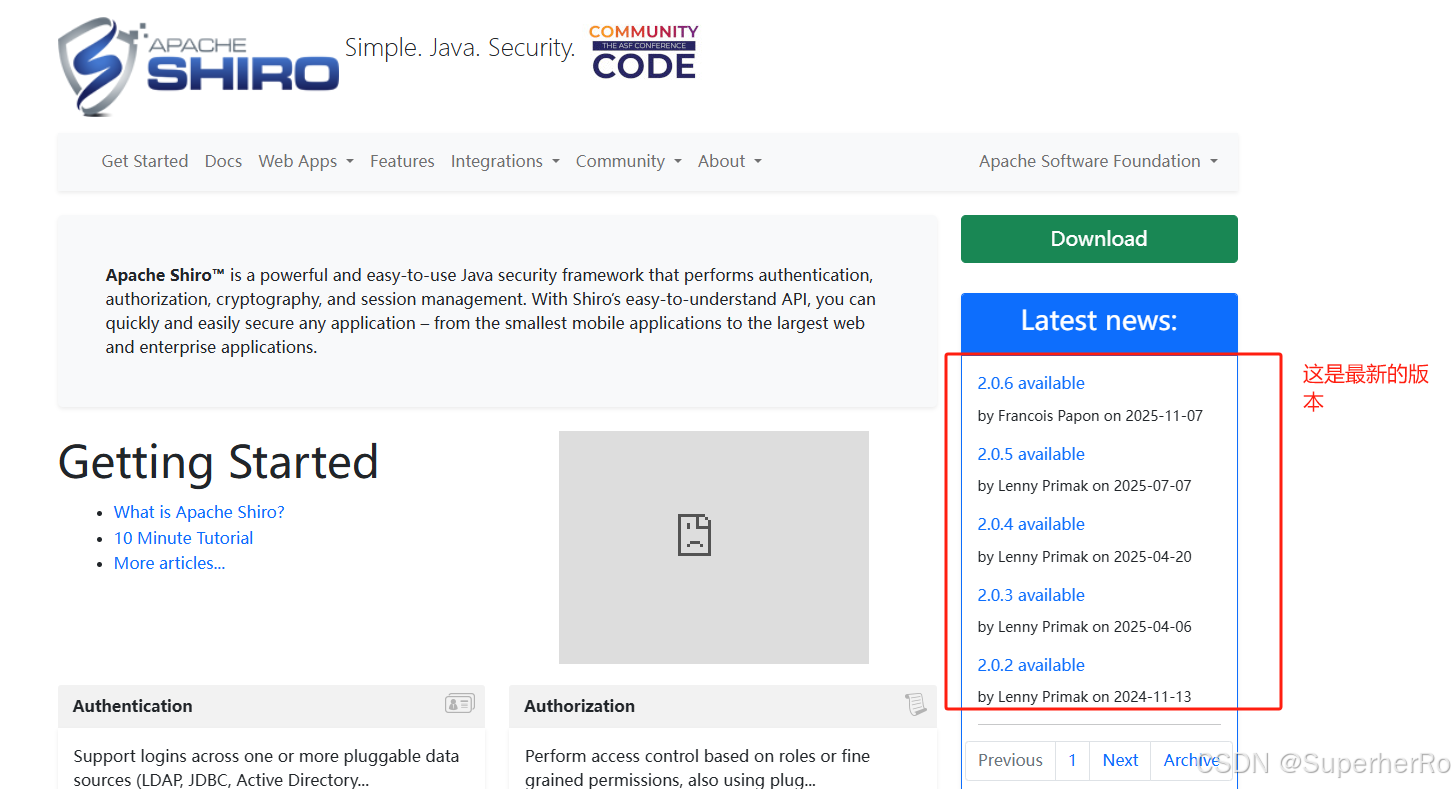 shiro官网:https://shiro.apache.org/