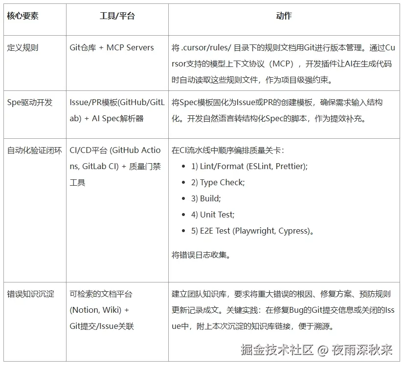 主要包括规则资产化、Spec 驱动、验证闭环、知识沉淀。