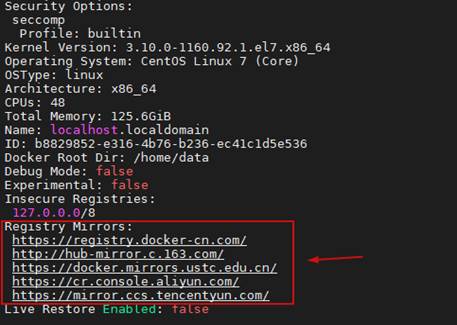 Registry Mirrors :有截图中框起来的就说明配置成功