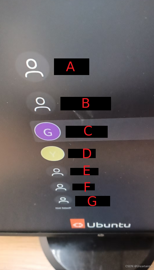 自定义头像(如 G/Y):表示该用户已有活跃的图形会话在运行(可能是远程工具(xrdp / 向日葵)占用,或之前未正常注销的本地会话)。