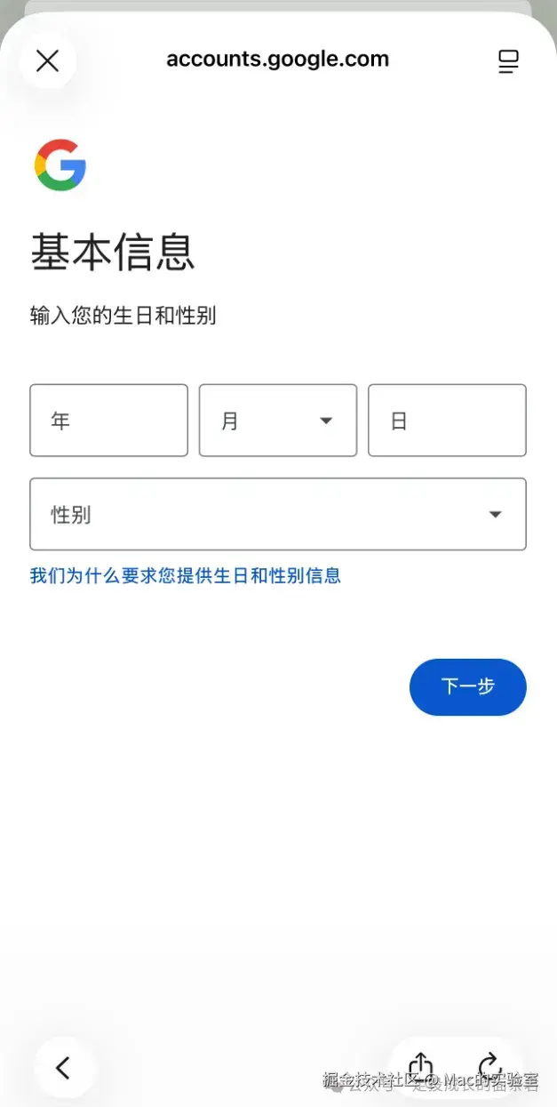 - 用新设备重新访问Google注册页面