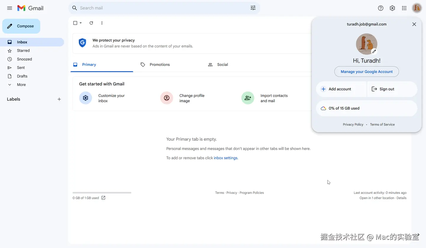 2.8 恭喜你,已经拿到一个谷歌邮箱,但是后面如果你想长期使用,建议你还是在个人信息中绑定手机号和辅助邮箱,不然谷歌系统会判定你是一个非正常使用的账号,可能会封掉你的账号。