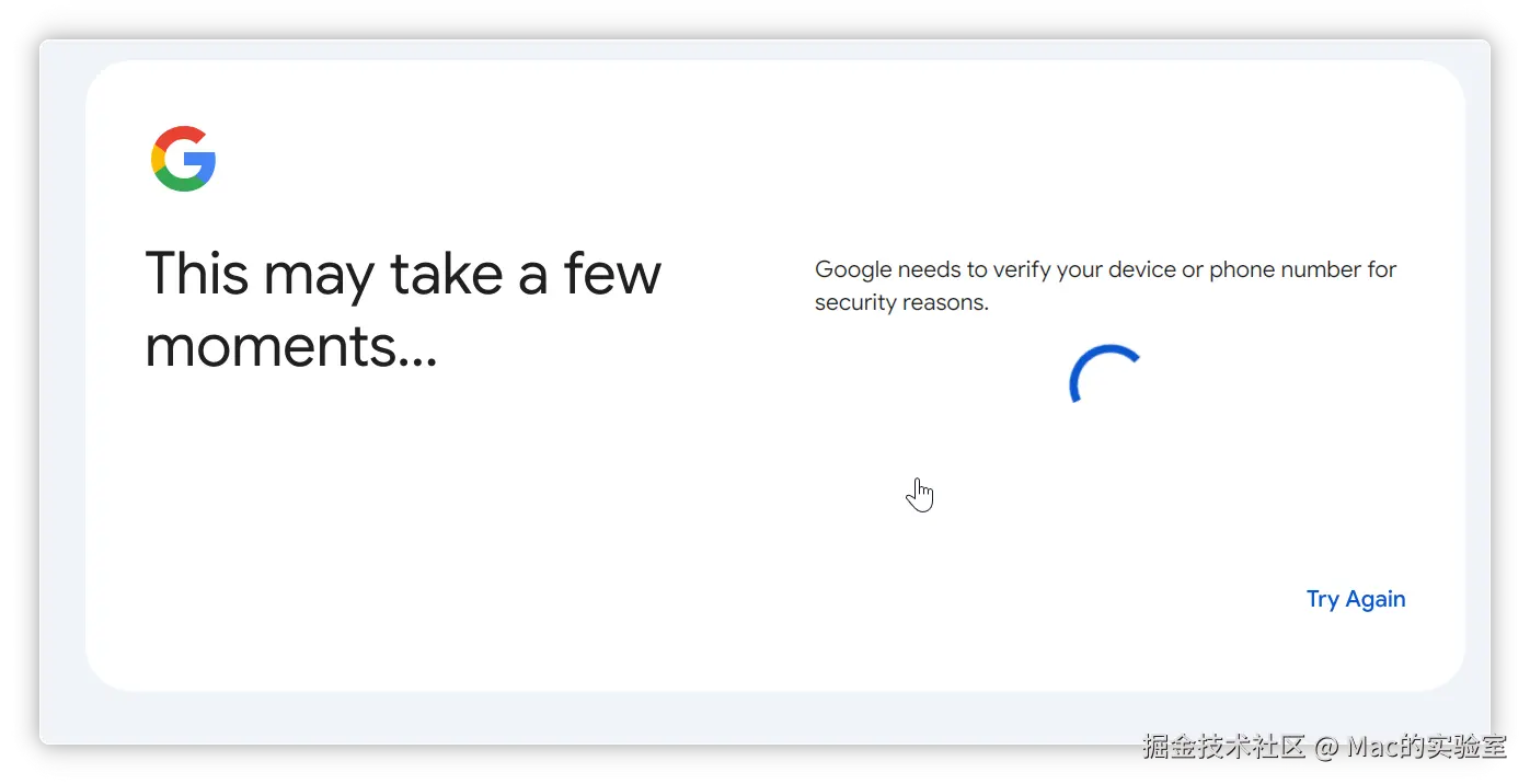 为安全起见,Google 需要验证您的设备或电话号码。