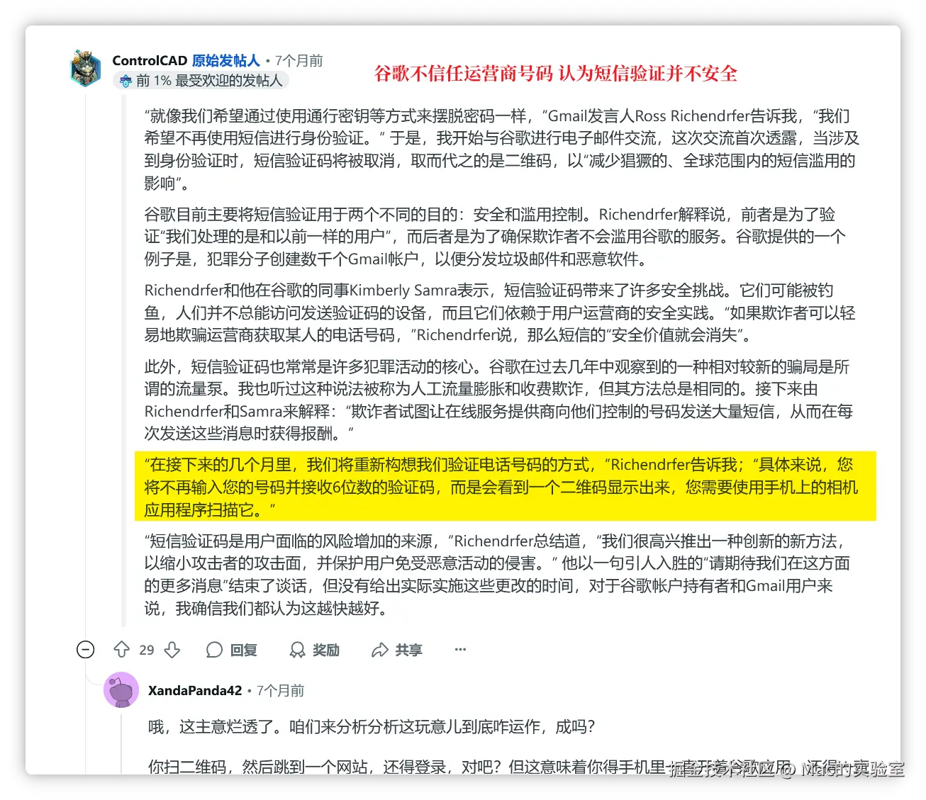 这个问题,其实并不是最近才出现的。早有报道谷歌的管理层认为使用二维码代替手机号验证是必经之路,这样的方式更安全。