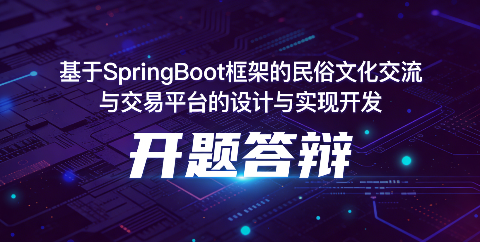 各位老师好,我是xx同学,本次毕业设计的题目是"基于SpringBoot框架的民俗文化交流与交易平台"。系统把"文化论坛"和"特色商城"合二为一:前端用 Vue+Element-ui 做页面,后端用 SpringBoot+MyBatis 搭服务,MySQL 存数据,前后端用 axios 通过 JSON 通信。主要分前台和后台两大块:前台给普通游客和注册用户,可以注册登录、发文章(图文音视频)、点赞打赏留言、上传民俗商品、下单购买、私信聊天、关注别人、管理个人资料;后台给管理员,可以审核文章和商品、置顶加精、对用户封号/设管理员、维护分类。整套架构前后端分离,Jar 包直接跑,Docker 部署也方便,计划 2025 年 5 月完成。