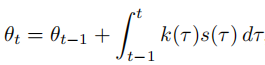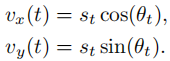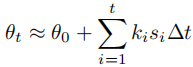 由曲率和速度的积分得到,表示车辆在时刻 的行驶方向,公式如下: