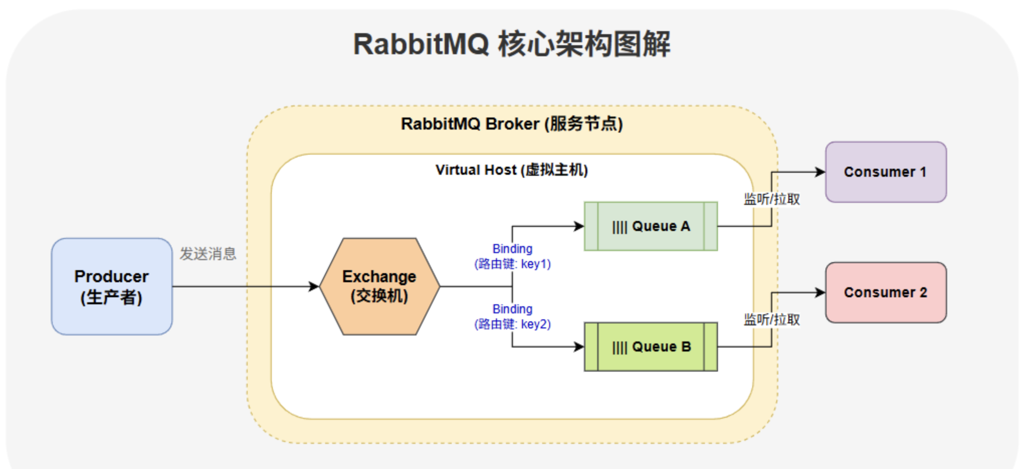 1、RabbitMQ的基本架构是什么?包括哪些核心组件?