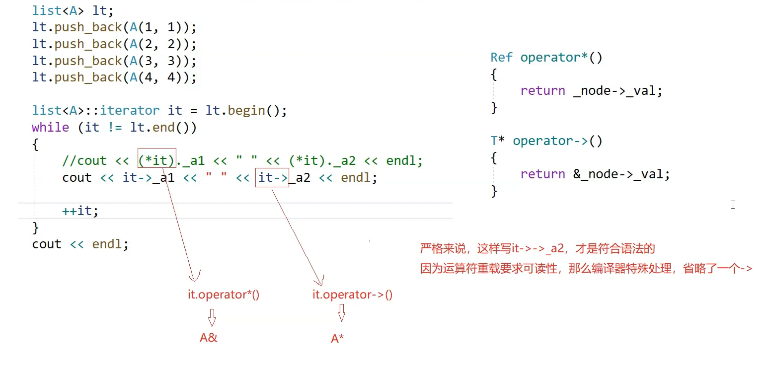 不能为迭代器编写析构函数 ------ 因为节点的内存是由容器管理的,迭代器只是 "借用节点指针来访问元素",本身并不持有节点的所有权。若在迭代器析构时释放节点,会导致容器内的节点被非法销毁,进而引发内存错误。