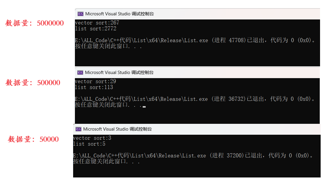这个结果也验证了 "list::sort仅适合小数据量" 的结论。