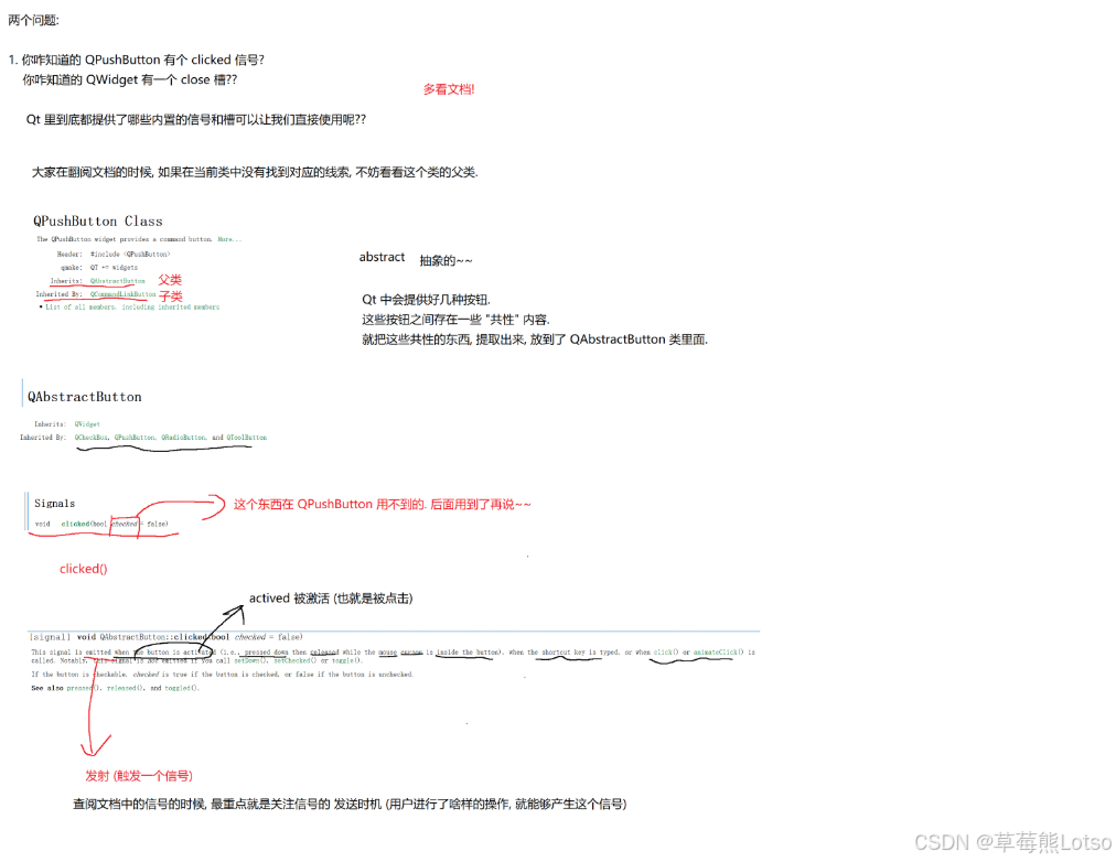 QPushButton的信号在父类QAbstractButton中)。
