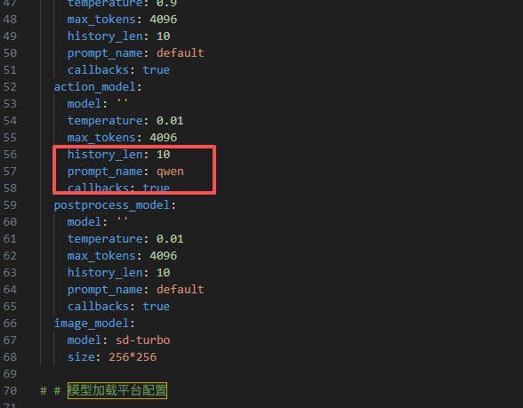 action_model->prompt_name换成qwen,至于这里有多少种设置方法,可以去看prompt_settings.yaml.