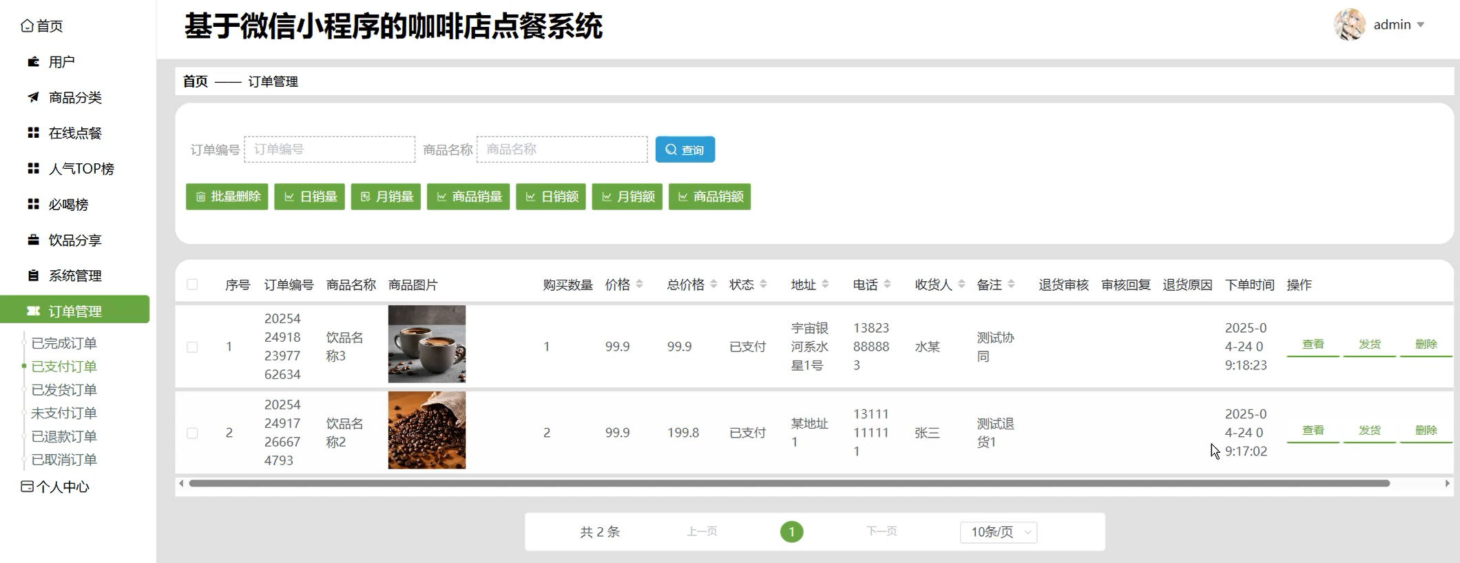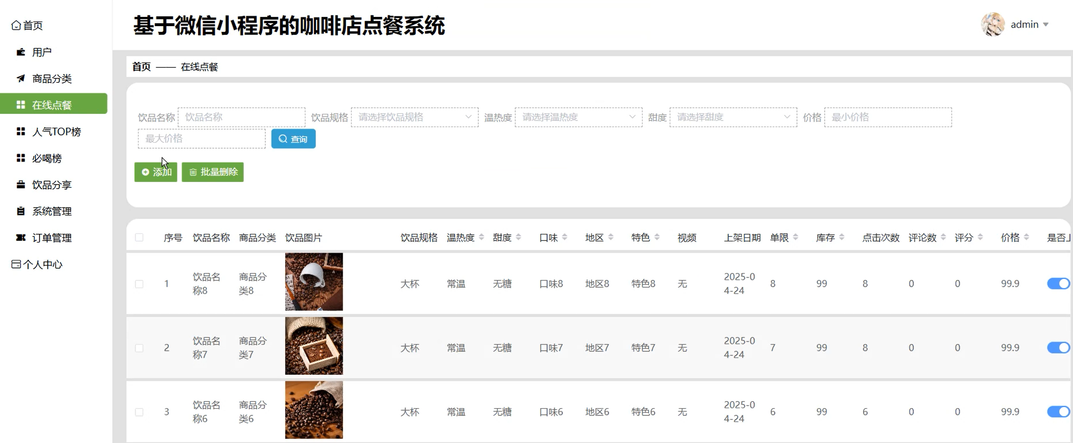 在线点餐管理页面