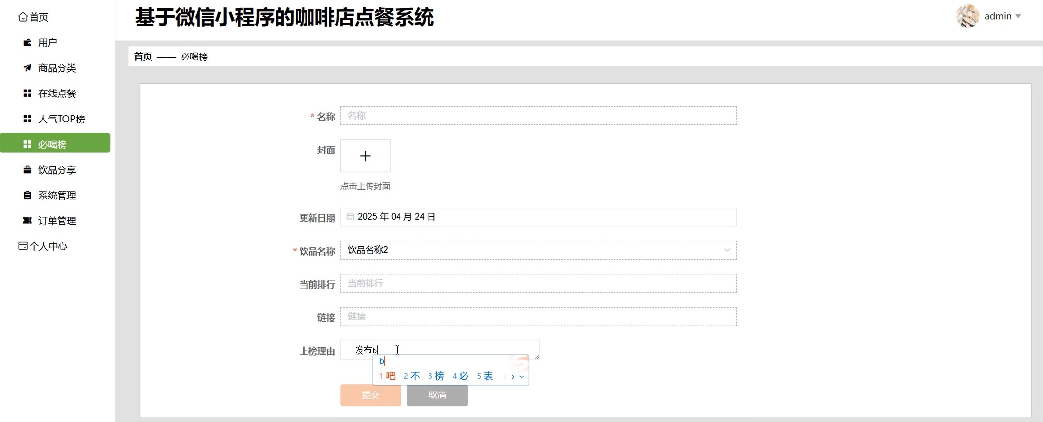 必喝榜管理页面