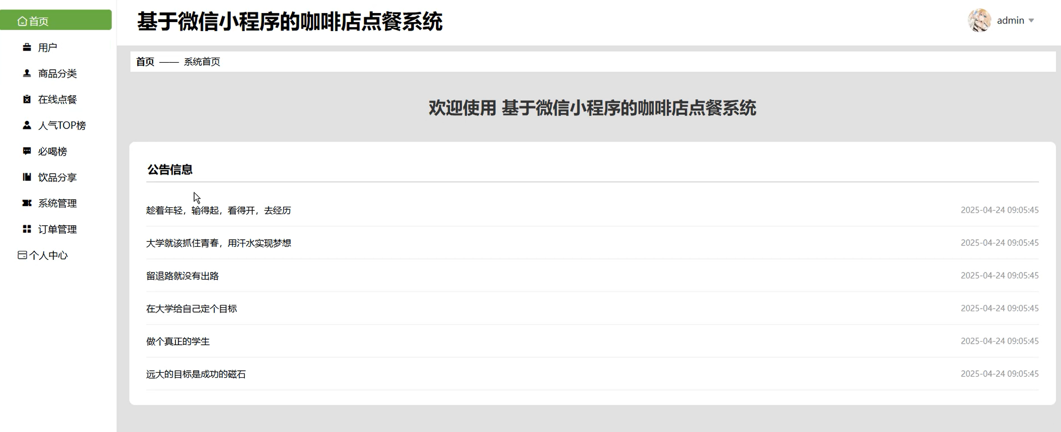 随着现代餐饮行业数字化转型加速,消费者对点餐效率、便捷性与个性化服务的需求日益增长,传统人工点餐模式在高峰时段易出现排队时间长、订单错误率高、服务响应延迟等问题,直接影响顾客体验与门店运营效率。尤其在咖啡消费场景中,全球市场规模持续扩大,连锁品牌与独立精品店竞争加剧,优化点餐流程成为提升竞争力的关键。新冠疫情后,"无接触服务"成为行业标配,进一步推动扫码点餐、自助终端等数字化解决方案的普及。然而,现有系统普遍存在稳定性不足、数据整合能力弱、用户交互体验差等问题,难以满足咖啡店对库存联动、会员营销、数据分析等深度需求。因此,开发基于微信小程序的咖啡店点餐系统,通过技术手段平衡效率与个性化服务,成为餐饮行业智能化转型的重要切入点。