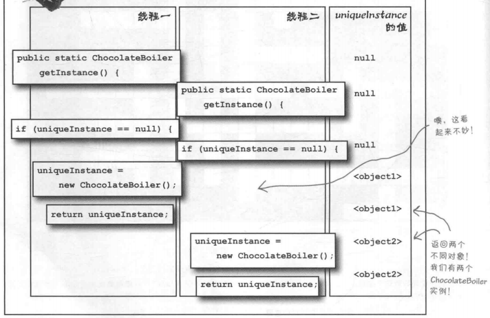 上面是书中用Java多线程场景下导致不同线程获得不同单件对象的例子,咱们C++方向的也能一下看懂。