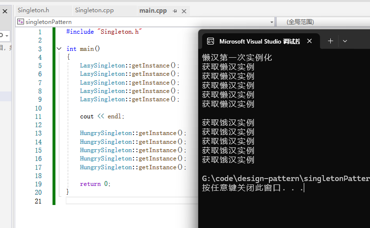 下面再看看恶汉模式的代码实现: