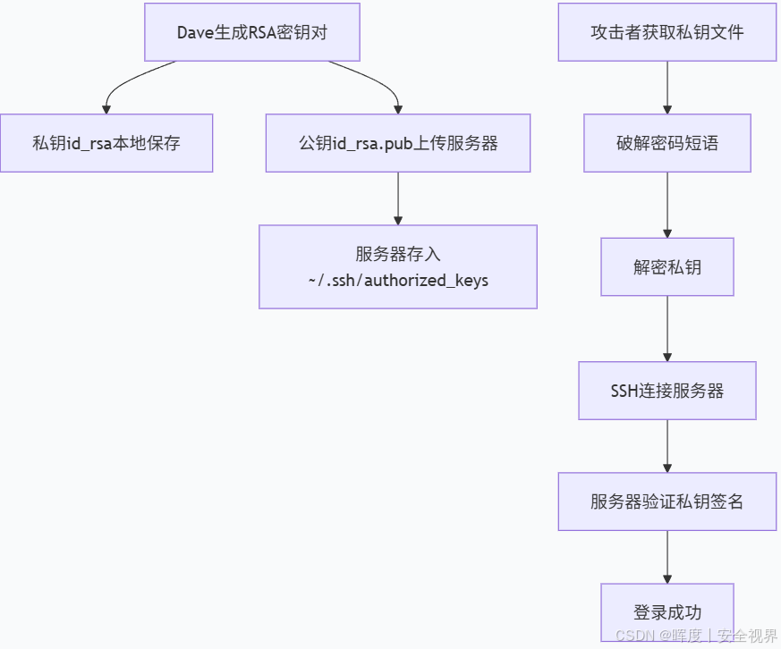 一旦攻击者获取了你的私钥文件(id_rsa) ,他便拥有了你这把"钥匙 ",可以尝试冒充你的身份去开启服务器上的那把"锁" 。如果没有额外保护,他就能直接登录。为了防止这个情况发生,这个时候就出现了**"密码短语"**。