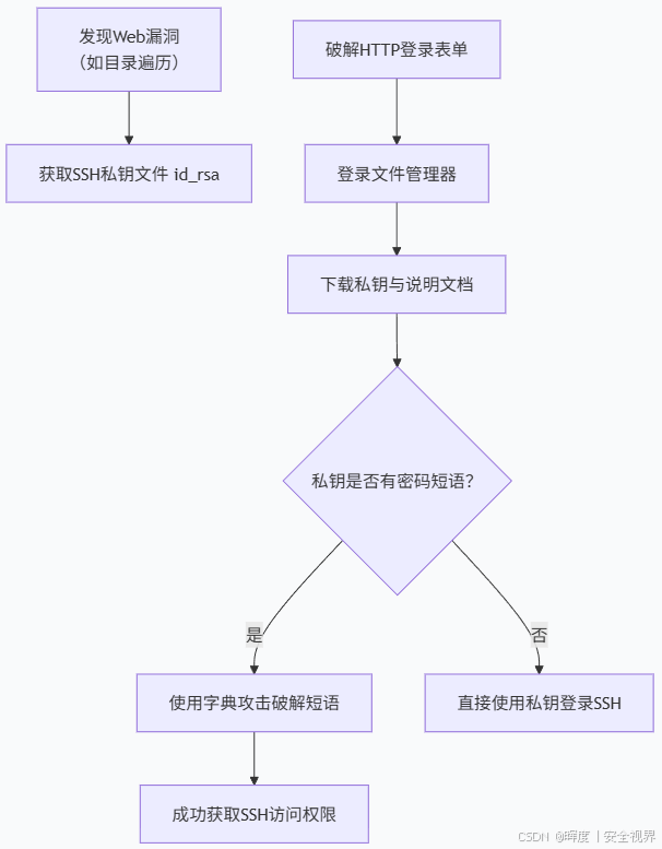 下图概括了从初始渗透到最终破解SSH私钥密码短语的完整过程: