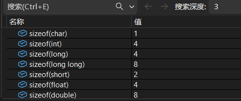short 2 char 1int4 long8 long long16 单位是bytes