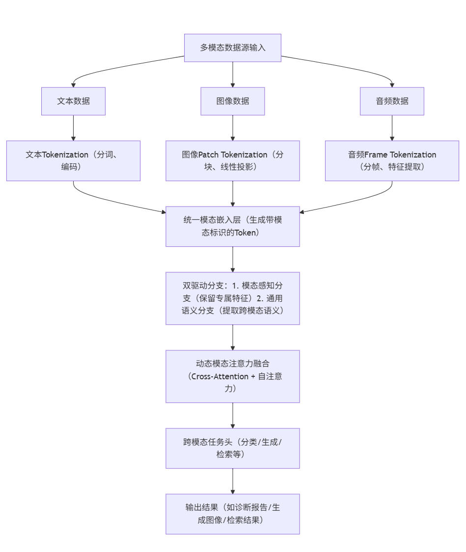 - 动态模态交互机制:引入模态注意力机制(如 Cross-Attention、Modality-Aware Self-Attention),让模型根据输入数据的模态类型,动态调整注意力分配权重,提升跨模态融合的精准度;