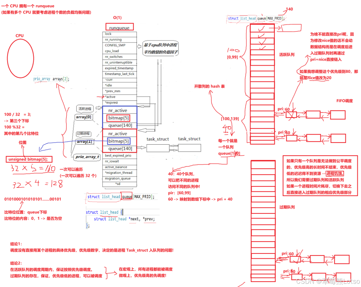 在 Linux 2.6 内核之前,进程调度采用的是 O (n) 算法 ------ 调度器需要遍历所有就绪进程才能找到优先级最高的那个,进程数量越多,调度效率越低,严重影响多任务场景的性能。而 2.6 内核引入的 O (1) 调度算法,彻底解决了这一痛点,其核心就是设计了高效的调度队列结构,让调度器无论面对多少进程,都能在常数时间内找到最优进程,大幅提升了系统吞吐量。本文从调度队列的核心数据结构、工作流程、优先级管理三个维度,拆解 O (1) 调度队列的设计精髓,帮你理解 "常数时间调度" 的底层逻辑,看透 Linux 内核的高效调度秘诀。