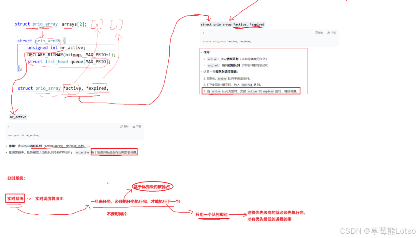 struct prio_array *active, *expired, arrays[2];
