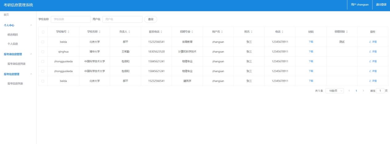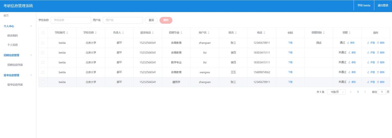 高校的主要功能主要包括:高校注册、登陆、退出,高校信息管理、招考信息发布、招录管理等。