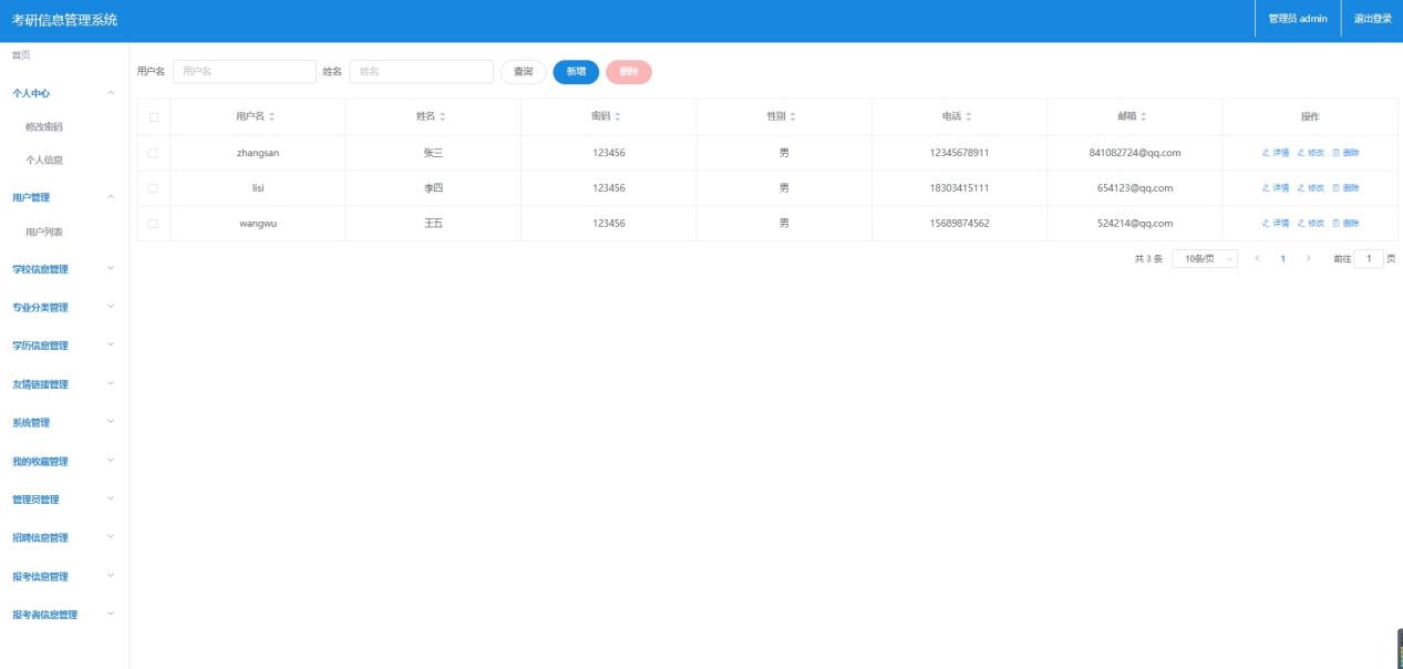 管理员的主要功能包括:系统登陆/退出、个人信息维护、高校管理、网站设置、用户管理、收藏管理 、招录管理等。
