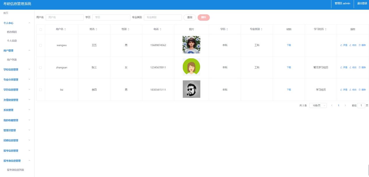 本系统主要包括三种角色:管理员、高校和学生。