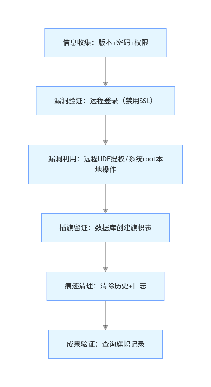本次 3306 端口渗透的成功,核心是灵活调整思路 + 解决关键卡点 + 完成全流程闭环: