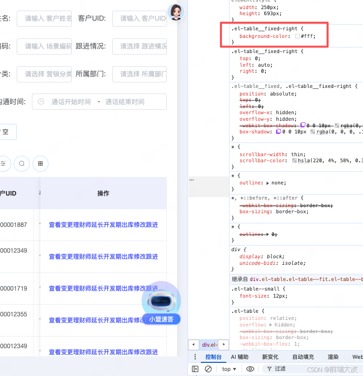 vue2项目中使用avue的crud功能,发现页面宽度过小(小屏电脑)时,会出现操作栏背景色透明问题