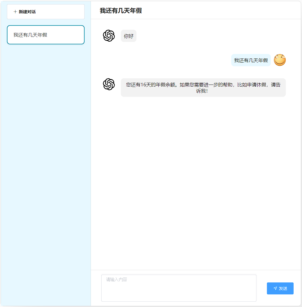 职责:基于 LangChain4j Tool 机制实现工具调用,对接内部假期额度系统,精准返回用户各类假期剩余天数。