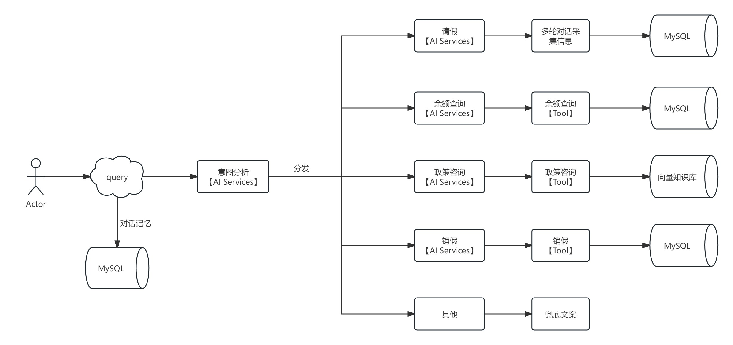 职责:基于 RAG(检索增强生成)架构,对接企业请假政策知识库,通过向量检索精准匹配政策内容,生成符合企业规范的回答,替代人工政策解读。