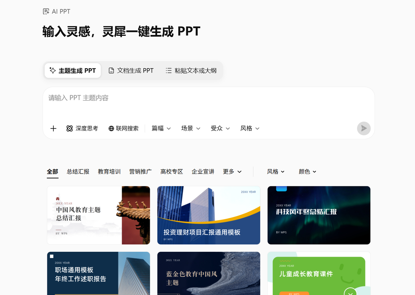 - 模板资源丰富,风格多样:接入WPS稻壳模板市场,提供10万+精品模板,在工作总结PPT生成时,可选择不同风格的模板,涵盖商务、简约、活力等多种类型,能满足不同场景的总结汇报需求。同时支持模板一键套用,快速提升PPT的视觉效果。