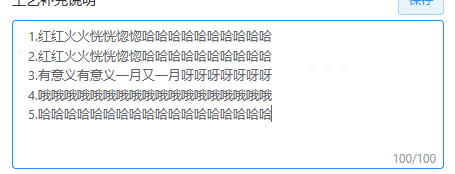 遇到的问题是在我换行的时候,例如我第一行输入了20个字符,这是我限制的的,换行后什么都没有输入但是已经计入到了21个字符长度。这里的96个字符后 就无法继续输入了,因为换行符占用导致的。