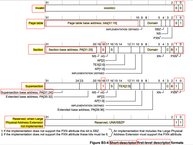 这里只是初始设定 Linux DOMAIN_KERNEL,DOMAIN_USER,DOMAIN_IO,DOMAIN_VECTORS 这 4 个内存 domain 的类型,那么,怎么决定哪块内存属于哪个 domain?答案是页表(这里讨论的是 Short-descriptor 格式页表项):