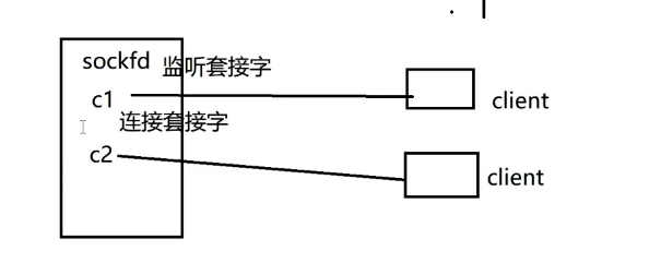 - c1/c2(连接套接字) :当客户端发起连接时,服务端通过