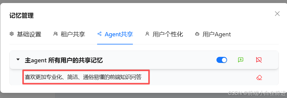 我在主智能体中设定了:"更加喜欢专业化、简介、通俗易懂的前端知识回答"