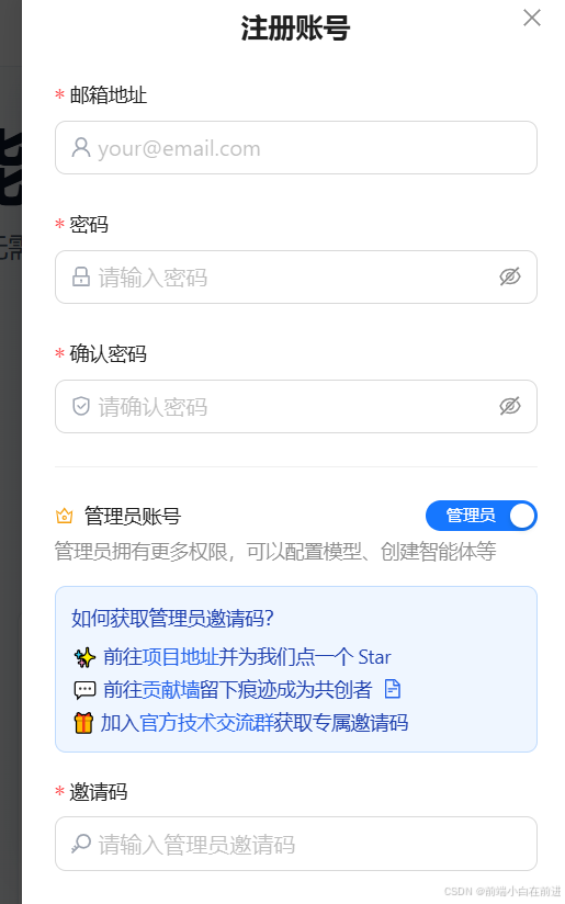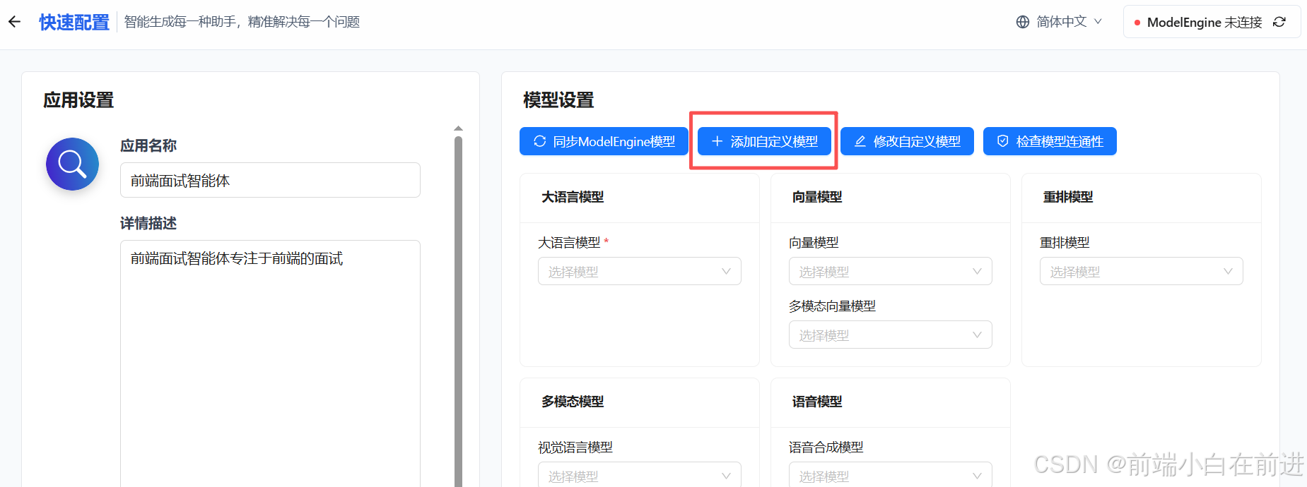 我们按照要求获取到邀请码,接下来可以配置我们自己的智能体,首先的就是添加自定义模型: