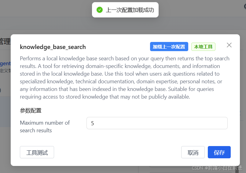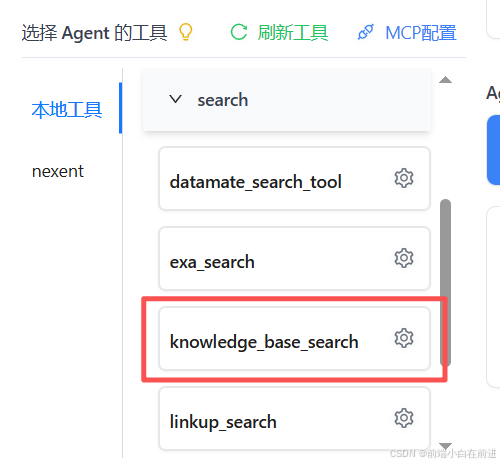 随后要在本地工具中选中knowledge_base_search工具来启动本地知识库检索能力:
