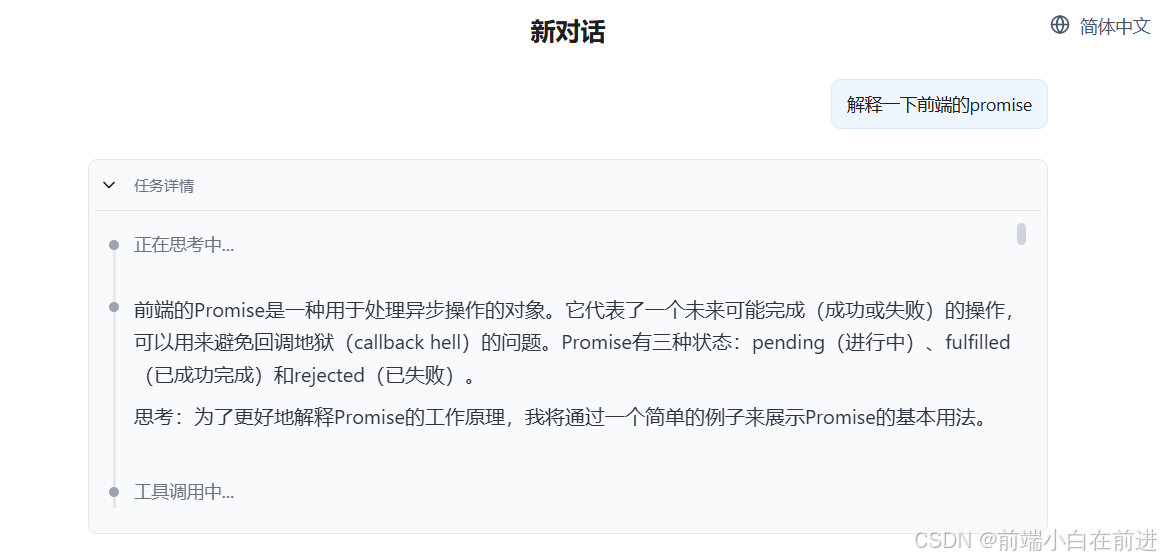 我们可以实时观察其任务运行情况,包括工具调用、网络搜索等等,从而便于我们进行针对性的调试。