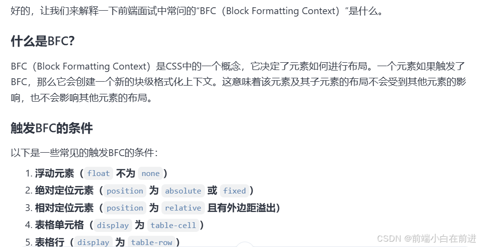 示例二:前端面试中常问的BFC是什么