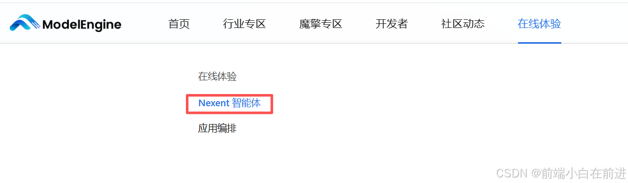 在ModelEngine官网找到"在线体验",然后点击Nexent智能体进入: