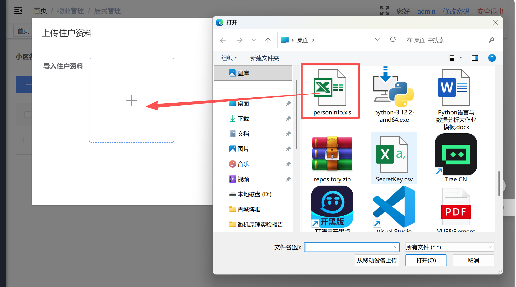 上传模板文件personInfo.xls