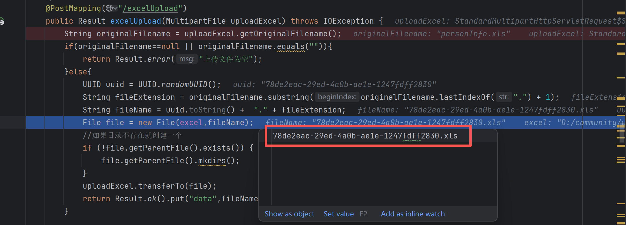 String originalFilename = uploadExcel.getOriginalFilename();